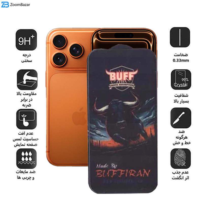 محافظ صفحه نمایش بوف مدل BullRun Crystal Pro-Guarantee مناسب برای گوشی موبایل اپل iPhone 17 Pro / 17 / 16 Pro