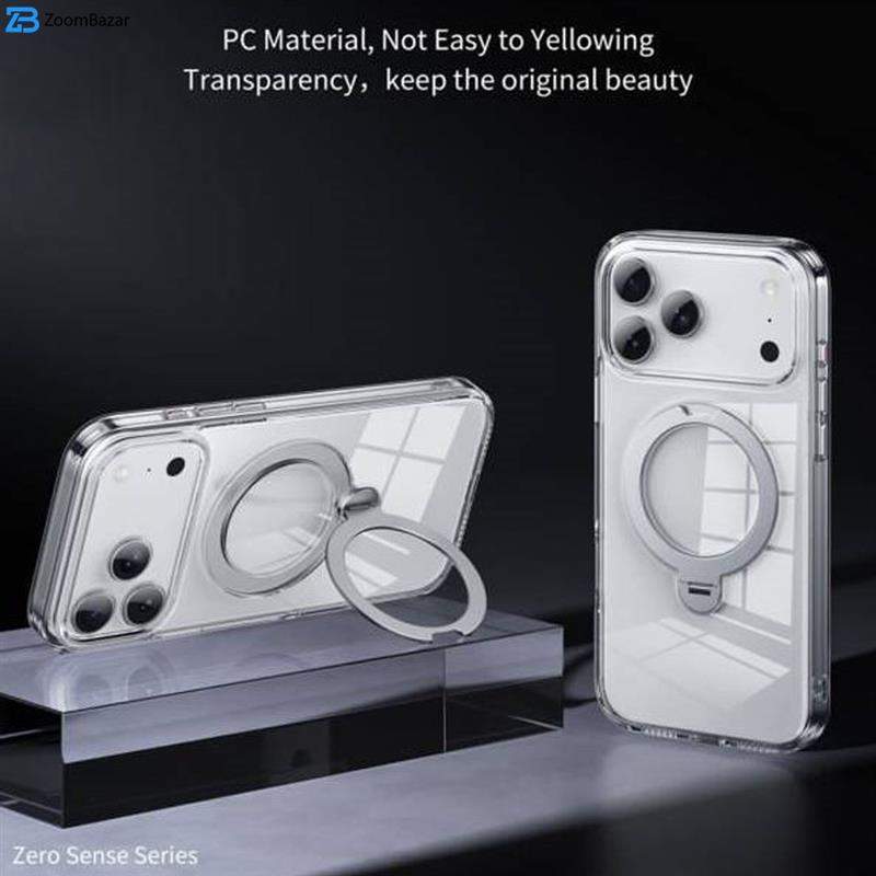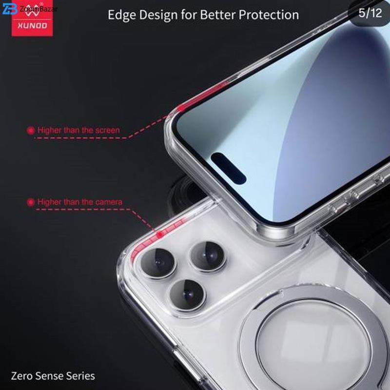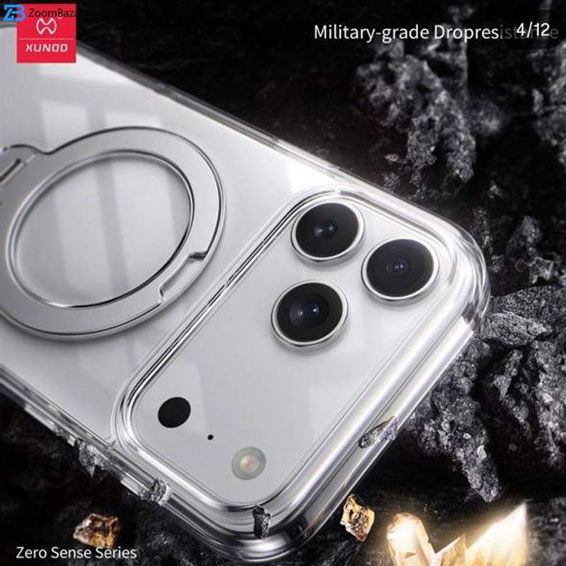 شاید شما هم از جمله کسانی باشید که دوست ندارند ظاهر زیبای گوشی خود را توسط قاب بپوشانند. در این صورت این قاب را به شما پیشنهاد می‌دهیم. این قاب از نوع شفاف و بی رنگ است و از کیفیت بالایی بهره می‌برد. کاور اپیکوی Xundd Zero Sense Magnetic بر خلاف دیگر قاب‌های شفاف ژله‌ای به سادگی زرد نمی‌شود و تا مدت زیادی می‌توانید از آن لذت ببرید همچنین در این مدل حلقه مگنتی متشکل از چندین آهن ربای ریز و قدرتمند طراحی و قرار داده شده است تا بتوانید بدون نیاز به خارج کردن گوشی از MagSafe آن جهت شارژ یا اتصال های بدون بی سیم به سادگی و به شکلی عالی استفاده نمایید. همچنین این حلقه با قابلیت تبدیل به استند در زوایای مختلق طراحی شده است تا تجربه کاربری بهتری را برای شما بسازد. سک نکته جالب در خصوص این کاور وجو برچسب هایی است که درون آن قرار دارد و میتوانید آن هارا به سلیقه خود در دایره وسط حلقه قرار دهید و آن را زیبا کنید. مقاومت بالا و مناسبی در برابر هرگونه آسیب و خط و خش دارد و با خیال راحت‌تری می‌توانید از گوشی خود لذت ببرید. نه تنها تغییری در ظاهر و استایل گوشی ایجاد نمی‌کند، بلکه رنگ آن را هم اصلا تغییر نمی دهد و می‌توانید از اصالت گوشی زیبای خود لذت ببرید.پشت این قاب از پلی کربنات ساخته شده که جنسی نسبتا سخت دارد. در نتیجه به خوبی در برابر خط و خش مقاومت می‌کند و به راحتی آسیب نخواهد دید.استفاده از پلی کربنات برای قاب یک مزیت مهم دیگر هم دارد و آن این است که در اثر گذشت زمان زرد و کدر نمی‌شود. مشکلی که معمولا برای قاب‌های ژله‌ای شفاف پیش می‌آید و زیبایی آن را از بین می‌برد.از مواد و متریال‌های باکیفیت در طراحی و ساخت این قاب استفاده شده است. در نتیجه دوام و کیفیت بالایی دارد و می‌توانید مدت‌های طولانی بدون مشکل از این قاب استفاده کنید.دور تا دور قاب نرم و منعطف است. خیلی راحت می‌توانید آن را روی گوشی نصب کنید و یا بردارید. به خوبی دور گوشی فیکس می‌شود و شل یا لق نیست.این کاور طراحی ظریف و باریکی دارد. به همین دلیل هم گوشی شما را حجیم و سنگین نمی‌کند. خیلی خوش دست است و به راحتی می‌توانید گوشی را در دست کنترل کنید. لبه‌ها دقیقا با لبه‌های گوشی هماهنگند. جای دوربین و جای دکمه‌ها کاملا مشخص است.اگر به قاب دقت کنید می‌بینید که گوشه‌های آن شیار دار و تقویت شده است.