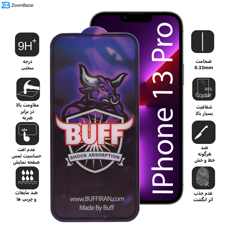 محافظ صفحه نمایش بوف مدل AirBag-Pro-G مناسب برای گوشی موبایل اپل Iphone 13 Pro به همراه بیمه 6 ماهه LCD