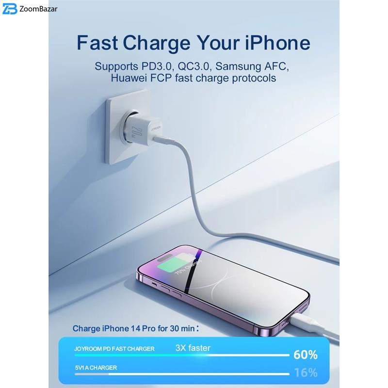شارژر دیواری 20 وات جوی روم مدل JR-TCF02 EU به همراه کابل تبدیل USB-C