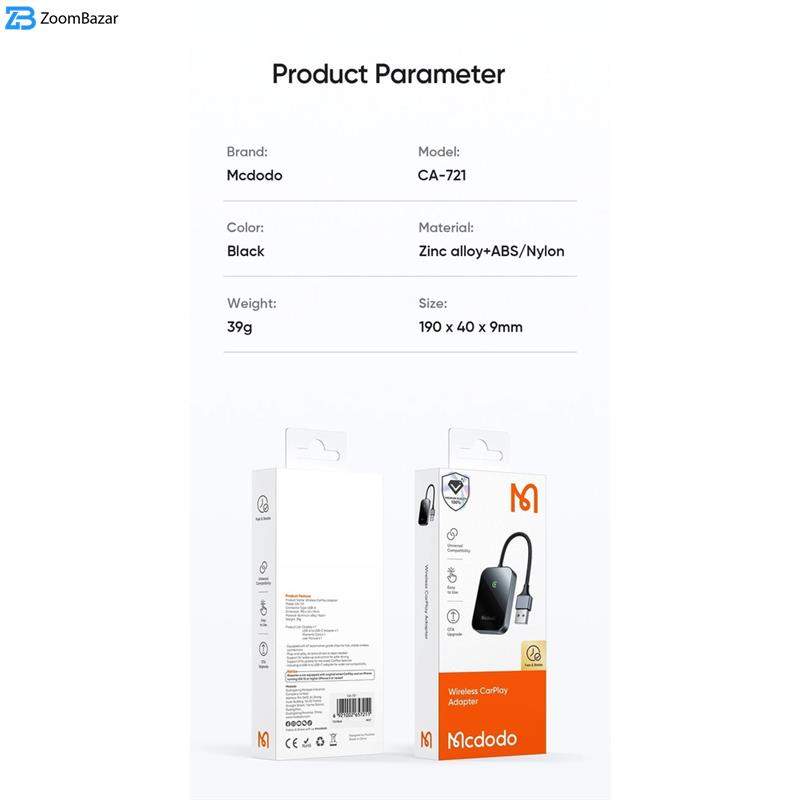 ما به دنبال خلق تجربهای متفاوت و حرفهای برای مشتریان خود هستیم، و گیرنده بلوتوثی مک دودو مدل CA-721 با طراحی پیشرفته و عملکرد بینقصش، دقیقاً همان چیزی است که شما برای تبدیل سیستم CarPlay سیمی به بیسیم نیاز دارید. این گیرنده با استفاده از چیپ A7، اتصالی سریع و پایدار را برای شما فراهم میکند و تجربهای بینظیر را را به ارمغان میآورد. گیرنده مک دودو CA-721 به سادگی و بدون نیاز به نصب نرمافزار یا درایور اضافی، به سیستم خودروی شما متصل میشود. با پشتیبانی از وایرلس ورژن های 2.1+EDR/3.0/4.X/5، این دستگاه اتصالی سریع و بدون وقفه را برای شما فراهم میکند. همچنین، قابلیت بهروزرسانی OTA به شما امکان میدهد تا همیشه از آخرین ویژگیهای CarPlay بهرهمند شوید. یکی از ویژگیهای منحصر به فرد این گیرنده، پشتیبانی از کنترل صوتی هوشمند (Ai wake-up) است که به شما امکان میدهد بدون نیاز به دست زدن به گوشی، دستورات خود را به سیستم صوتی خودرو بدهید. این ویژگی نه تنها رانندگی شما را ایمنتر میکند، بلکه تجربهای لذتبخش از استفاده از CarPlay را برای شما فراهم مینماید. گیرنده مک دودو CA-721 با بدنه مقاوم از جنس آلیاژ آلومینیوم و ABS، دوام بالایی دارد و به راحتی در خودروی شما نصب میشود. این گیرنده فقط یک ابزار نیست؛ یک همراه هوشمند برای رانندگی شماست.