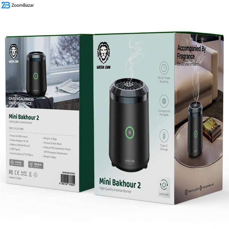 دستگاه بخور هوشمند شارژی گرین لاین مدل Mini Bakhour 2 از ترکیبی از فلز و پلاستیک ABS ساخته شده است که به آن مقاومت بالایی میبخشد.این دستگاه بخور دارای ابعاد 98x74x67 میلی متر و وزن آن برابر 400 گرم است که به راحتی می توانید روی میز کار یا درون ماشین خود قرار دهید. یکی دیگر از ویژگی های خوب این دستگاه بی صدا بودن است که باعث میشود بتوانید در محیطهای مختلف از جمله اتاق خواب یا محیطهای اداری از آن استفاده کنید. باتری دستگاه خوشبو کننده هوا Green Lion Mini Bakhour 2 نیز ظرفیت 2000 میلی آمپر ساعتی دارد و با یک شارژ میتوانید 10 تا 15 بار از آن استفاده کنید. دستگاه بخور عود گرین لاین با پورت شارژ Type-C عرضه میشود که امکان شارژ سریع و راحت را فراهم میکند. این ویژگی به شما اجازه میدهد تا دستگاه را به سادگی و در مدت زمان کوتاهی شارژ کنید و از آن بهرهمند شوید. وجود چراغ LED در این دستگاه نه تنها به زیبایی آن افزوده بلکه به عنوان یک نور ملایم و آرامشبخش در محیط نیز عمل میکند. این ویژگی باعث میشود که دستگاه در شب نیز کاربردی و جذاب باشد. طراحی جمع و جور و قابل حمل این دستگاه باعث میشود که بتوانید آن را به راحتی در هر مکانی استفاده کنید. از داخل خودرو گرفته تا فضای منزل و محل کار، این دستگاه بخور عود میتواند همراه شما باشد و محیط اطرافتان را معطر و خوشبو کند.