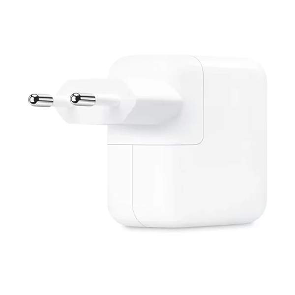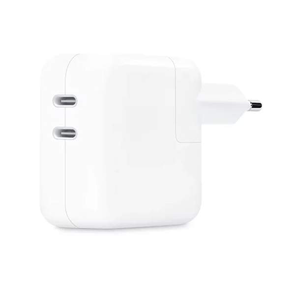شارژر اپل مدل 35 وات (Apple 35W Dual USB-C Power Adapter) یکی از محصولات رسمی و باکیفیت اپل است که برای شارژ همزمان دو دستگاه طراحی شده است. این شارژر با ظاهری ساده و مینیمال، از طراحی سفید و براق مخصوص اپل بهره میبرد و کیفیت ساخت بالایی دارد. بدنهی آن از پلاستیک فشرده و مقاوم در برابر حرارت ساخته شده است که علاوهبر دوام زیاد، ایمنی شارژ را نیز تضمین میکند.