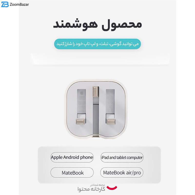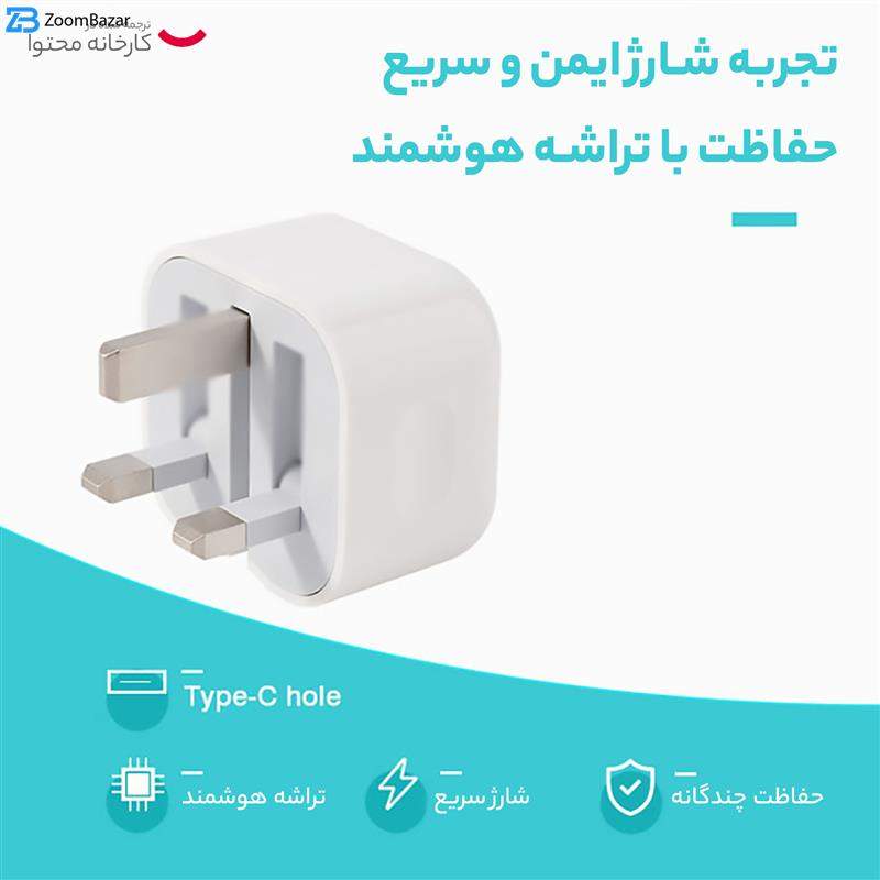 توان خروجی در این مدل از شارژرهای دیواری «اپل» 20 وات است. همچنین جریان خروجی در آن 3.0 آمپر شدت دارد و برای شارژ باتری انواع گوشیهای موبایل، دوربین دیجیتال و دیگر لوازم از این قبیل مناسب خواهد بود. در این شارژر دیواری یک سه شاخه برق قرار گرفته که از آن برای اتصال شارژر به پریز برق استفاده میشود. البته توجه داشته باشید که این سه شاخه با پریز برق در ایران سازگاری ندارد و شما برای استفاده از آن باید از یک تبدیل 3 به 2 استفاده کنید. پس از استفاده از این تبدیل، شما میتوانید شارژر را بهطور مستقیم به پریز برق متصل کرده و دستگاه مورد نظر خود را با کمک یک کابل USB به آن متصل کنید. ولتاژ ورودی در این شارژر 220 تا 240 ولت و ولتاژ خروجی در آن 20 ولت است. وزن این شارژر 80 گرم بوده و ابعاد آن بهصورتی طراحی شده که بهسادگی قابل حمل باشد.