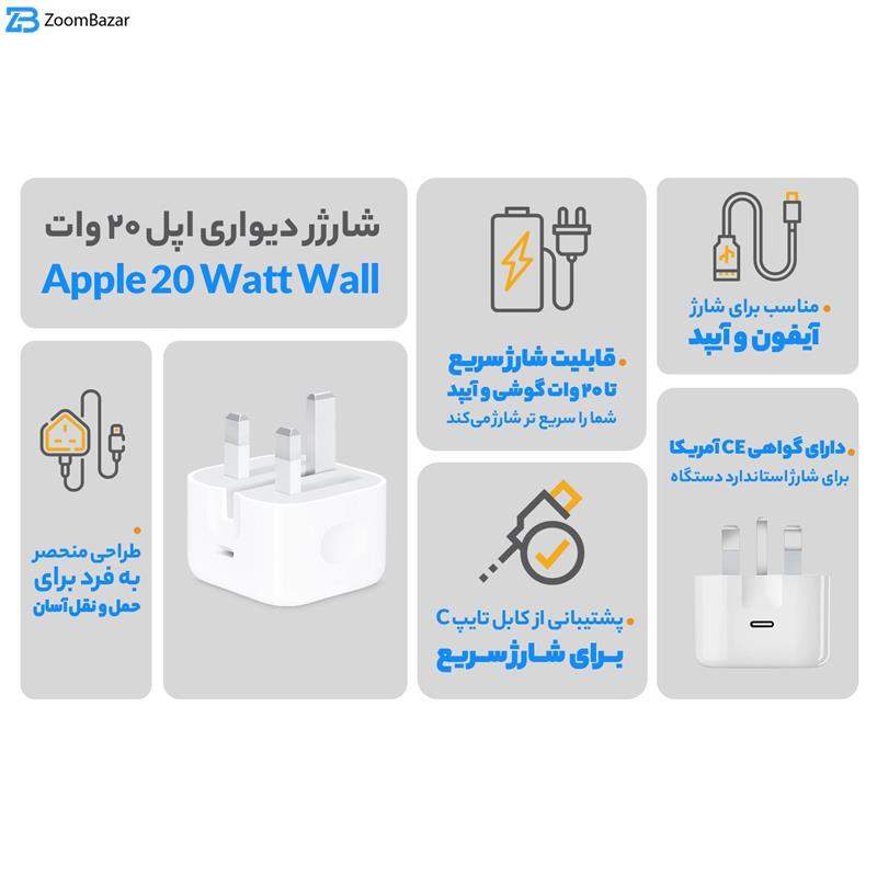 شارژر دیواری 20 وات اپل مدل ZP/A