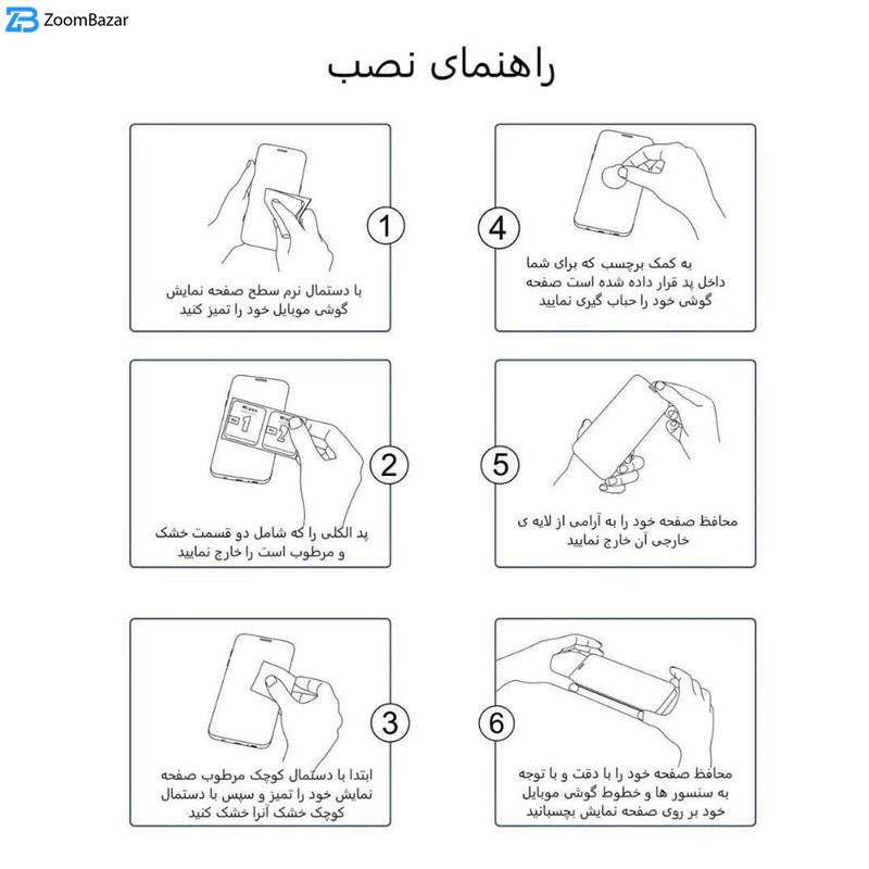 - ویژگیها 9H، جلوگیری از انعکاس نور، مقاوم در برابر خط و خش، نصب بدون حباب، قابلیت نصب آسان