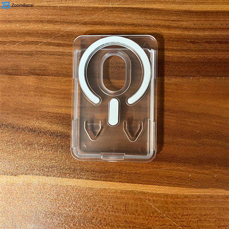 در قسمت پشتی قاب، حلقه‌ی مگنتی قدرتمند تعبیه شده که با فناوری MagSafe اپل سازگار است. این ویژگی به شما امکان می‌دهد تا گوشی خود را به‌صورت مغناطیسی و کاملاً ایمن به شارژرهای بی‌سیم، پایه‌های نگهدارنده خودرو یا استندهای رومیزی متصل کنید. مگنت داخلی قوی باعث می‌شود اتصال پایدار و بدون لغزش برقرار شده و تجربه‌ای راحت و مطمئن از شارژ یا استفاده روزمره داشته باشید.