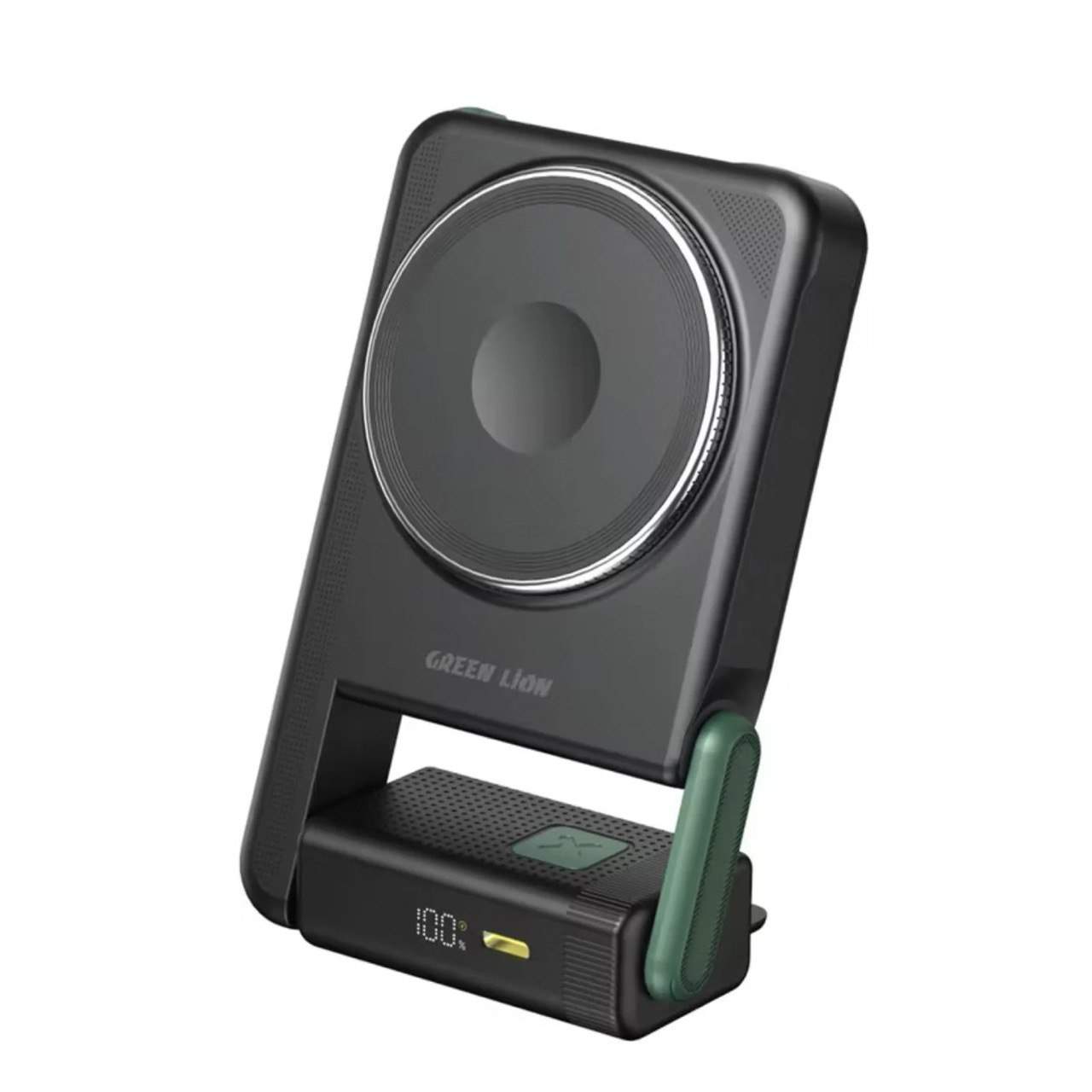 پاوربانک Green Lion 3 1 Magsafe 10000mAh تمام چیزی است که برای شارژ نگه داشتن دستگاههایتان نیاز دارید. این پاوربانک میتواند همزمان تلفن شما و یک دستگاه سازگار با MagSafe دیگر، مانند هدفونهایتان را شارژ کند.