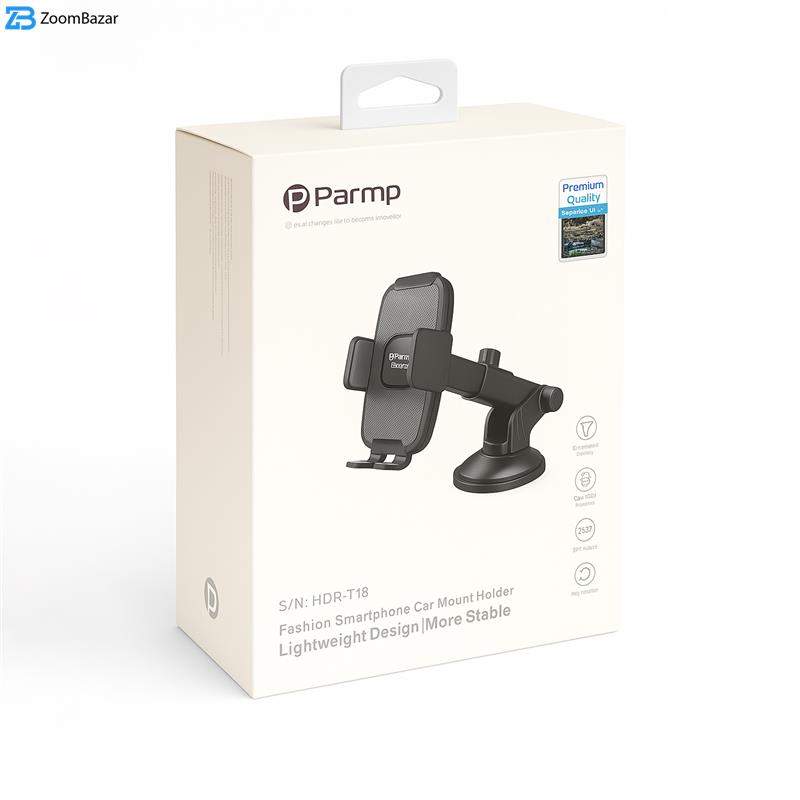 هلدر نگهدارنده موبایل پارمپ مدل HDR-T18 یک پایه نگهدارنده یونیورسال است که هم روی داشبورد و هم روی شیشه خودرو قابل نصب است. این هلدر با بال‌های قابل تنظیم و گیره‌ای با عرض انعطاف‌پذیر، گوشی‌های مختلف را به‌راحتی در خود جای می‌دهد و قابلیت چرخش ۳۶۰ درجه برای بهترین زاویه دید را دارد. طراحی جمع‌وجور و محکم آن امکان استفاده آسان و ایمن در هر خودرو را فراهم می‌کند و تجربه رانندگی راحت و بدون حواس‌پرتی را تضمین می‌کند.