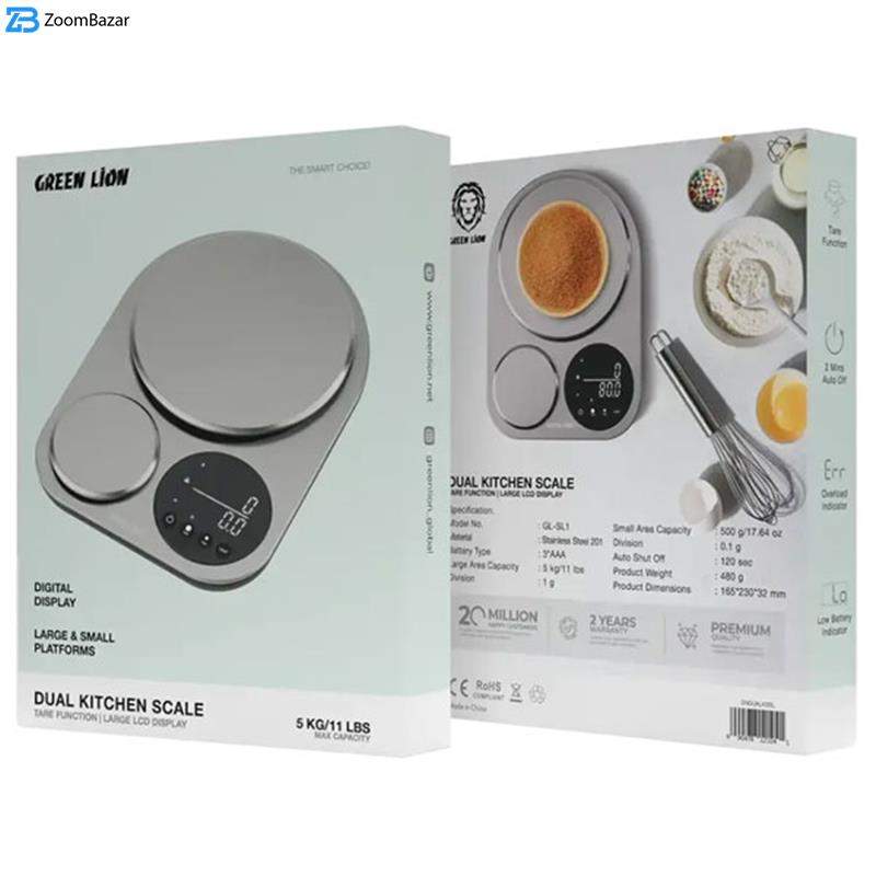 ترازو آشپزخانه دیجیتال گرین لاین مدل دوکاره حداکثر ظرفیت قابل اندازهگیری 5 کیلوگرم با دقت اندازهگیری 0.1 گرم