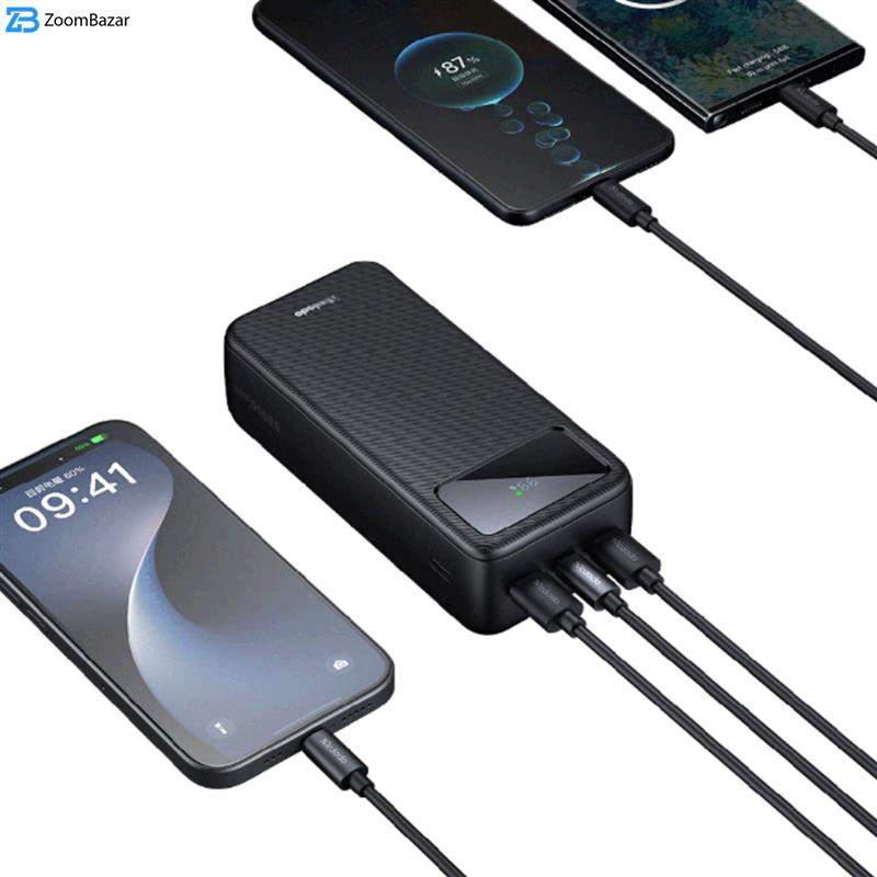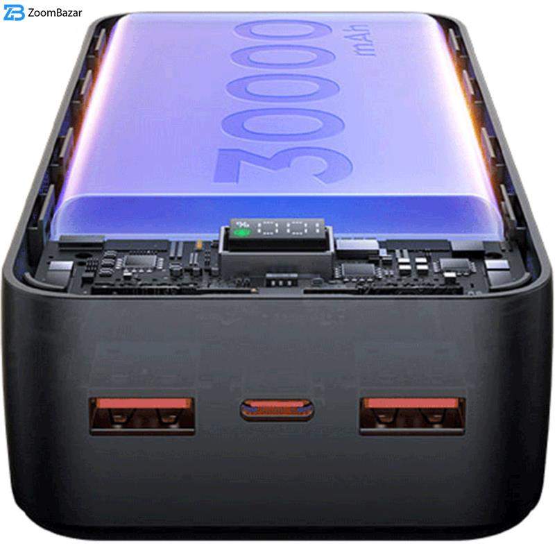 این پاور بانک باطراحی ساده از مواد با کیفیت ساخته شده . این پاور بانک با ظرفیت 30000 میلی آمپر است. دارای سه پورت داخلی و خارجی با قدرت 22.5 وات است.
