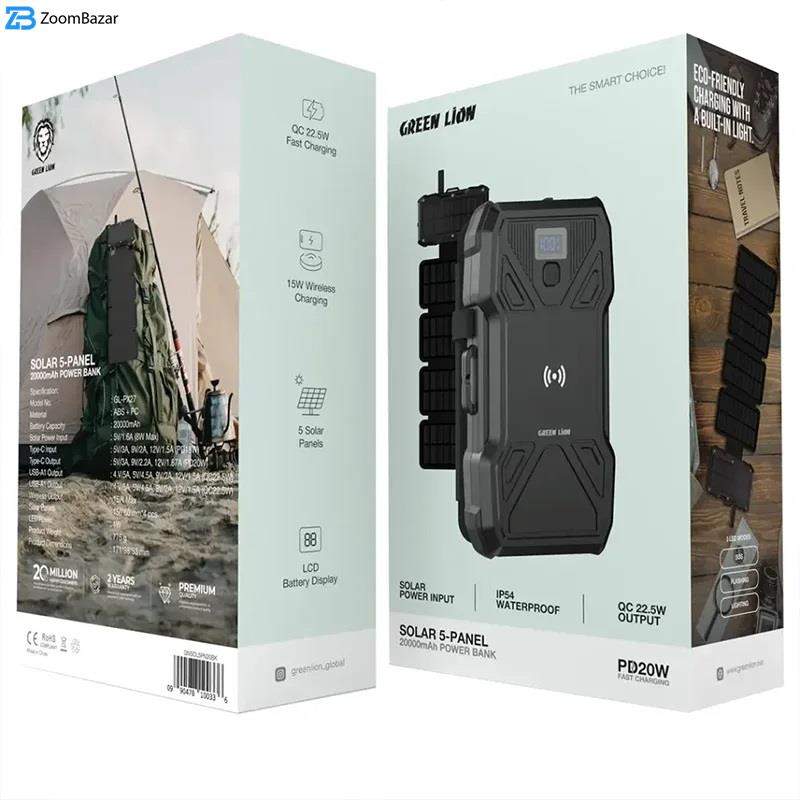 پاوربانک گرین لاین مدل GL-PX27 Solar 5-Panel ظرفیت 20000 میلیآمپر ساعت