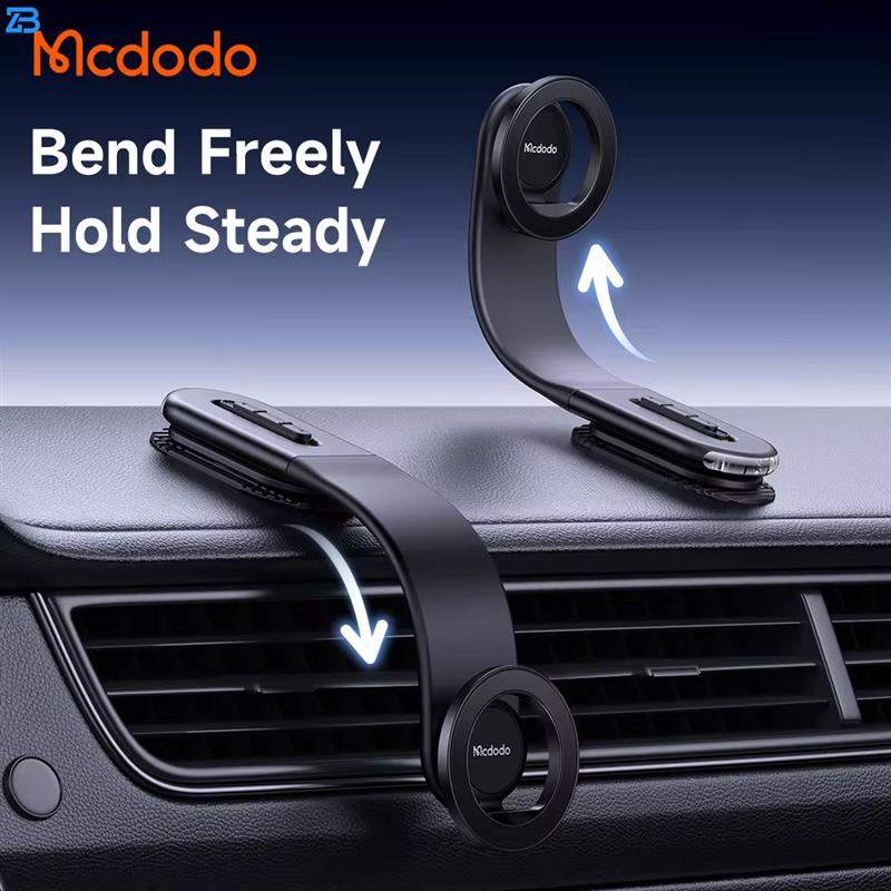 هولدر مغناطیسی Mcdodo 627 با بازوی فلزی قابل خم شدن تا ۱۸۰ درجه، صفحه آهنربایی ۳۶۰ درجه، چسب 3M قوی و طراحی مقاوم، بهراحتی گوشی شما را در خودرو محکم نگه میدارد و انعطافپذیری زاویه دید را فراهم میکند.