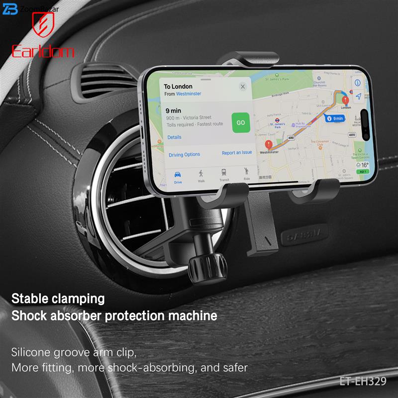 پایه نگهدارنده گوشی موبایل ارلدام مدل EH329 یک هولدر با طراحی ساده و مقاوم از جنس ABS است که روی دریچه کولر خودرو نصب میشود. این محصول قابلیت نگهداری گوشیهای موبایل سایز ۴.۸ تا ۷ اینچ را دارد و با مکانیزم گیرهای محکم، ثبات بالایی حتی در مسیرهای ناهموار فراهم میکند. بازوهای گیره دارای پوشش سیلیکونی هستند که علاوه بر محافظت از بدنه گوشی در برابر خطوخش، خاصیت ضدلغزش و ضد لرزش نیز ایجاد میکنند.
