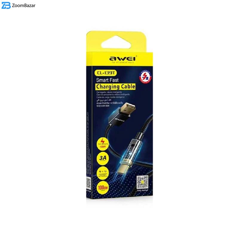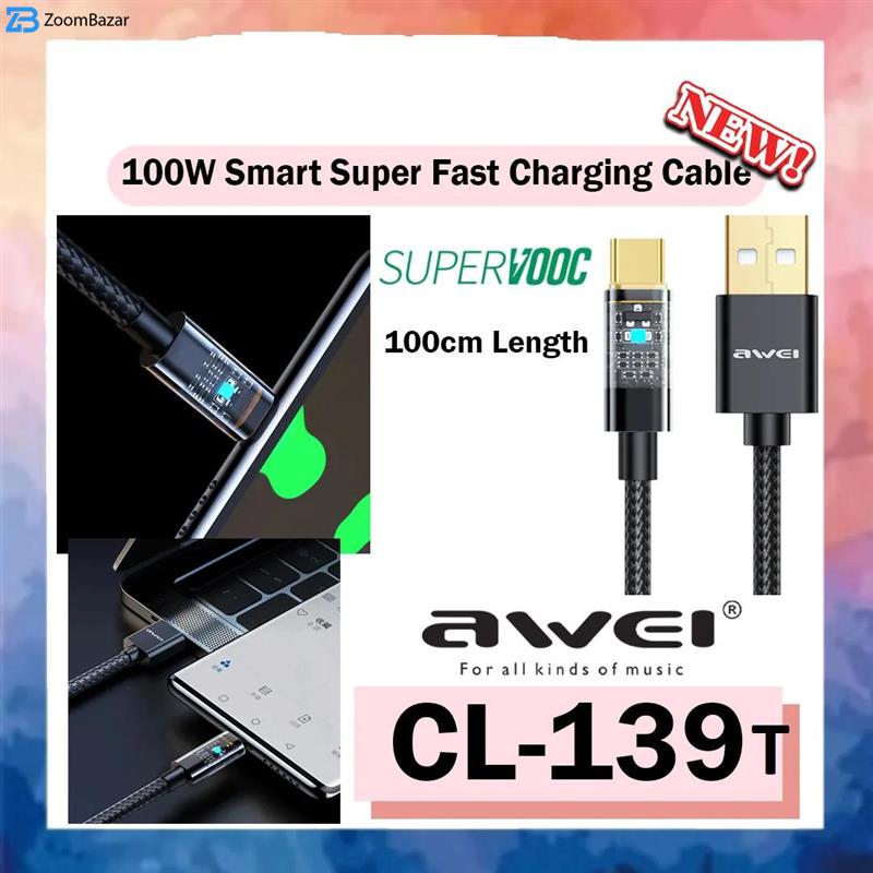 کابل تبدیل CL-139T برند AWEI برای انتقال اطلاعات (دیتا) و شارژ دستگاههای مجهز به درگاه USB Type-c مناسب است؛ اطلاعات با سرعت480 گیگابیت در ثانیه منتقل میشوند. این محصول طول 1 متری دارد؛ این کابل بدنهای از جنس بافتدار داشته و در برابر کشیدهشدن بسیار مقاوم است. در یک سمت این کابل یک کانکتور USB 2.0 و در سمت دیگر آن یک کانکتور USB Type-c قرار دارد. همچنین کانکتورهای موجود در این محصول از جنس آلومینیم تولید شدهاند و استحکام خوبی به محل اتصال کابل و کانکتور میدهد.