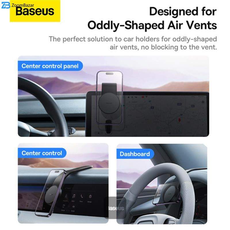 هولدر مگنتی بیسوس Baseus C02 از آلیاژ تیتانیوم حافظهدار با طراحی مینیمالیستی و روکش مات زیبا ساخته شده که به خوبی با دکوراسیون داخلی خودرو مانند ماشینهای تسلا مطابقت دارد.