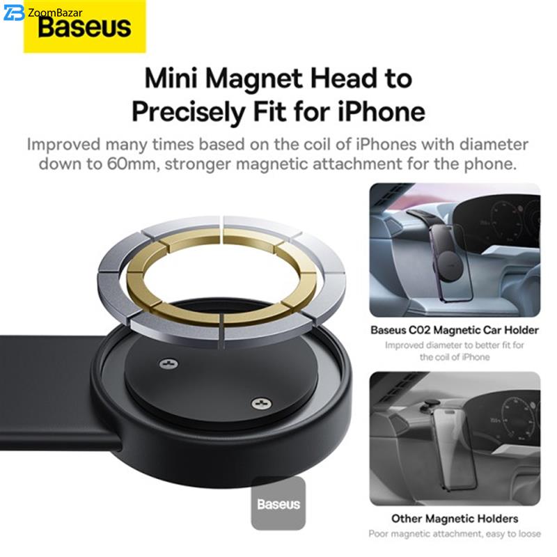 پایه نگهدارنده مگنتی بیسوس به طور ویژه برای گوشیهای مگسیف دار آیفون سری 12، 13، 14 و 15 طراحی شده اما برای سایر مدلهای دیگر در بسته بندی محصول یک برچسب حلقه فلزی وجود دارد که به پشت گوشی برای جذب مغناطیسی متصل میشود.