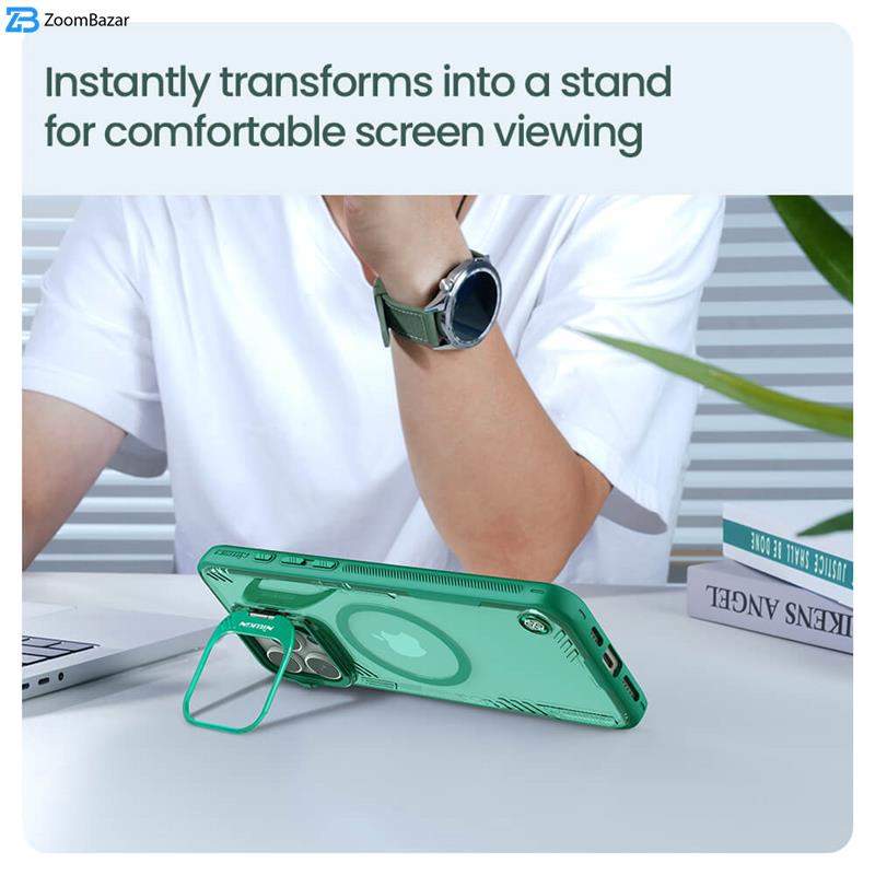 این شرکت تقریبا همه لوازم جانبی گوشی ها اعم از کیف، قاب، محافظ صفحه و … را طراحی و تولید می کند و به دلیل کیفیت بالای محصولاتی که عرضه کرده به عنوان یکی از برندهای معتبر در این زمینه شناخته شده است. از میان انواع مختلف قاب هایی که تولید کرده می توان به قاب نیلکین مدل Iceblade Prop Frame version Magnetic اشاره کرد که از جنس پلی کربنات (PC) و تی پی یو بوده و از موادی سازگار با محیط زیست و غیر سمی تهیه شده است. قاب نیلکین Iceblade گوشی آیفون با استفاده از فناوری تزریق پلاستیک ساخته شده و از کیفیت بسیار بالایی برخوردار است. این قاب با طراحی منحصر به فردی که دارد در دو طرح شفاف سبز و مشکی تولید و روانه بازار شده است. این قاب ها به نحوی رنگ ریزی شده که در عین حفظ شفافیت خود هاله ای از رنگ سبز و مشکی را نیز دارند که این زیبایی آنها را دو چندان می کند، چون کاربر می تواند با انتخاب رنگ مورد نظر خود، با استفاده از شفافیت قاب نیلکین در عین حفظ زیبایی گوشی، همچنین رنگ آن را تغییر دهد و از کار با آن لذت ببرد. قاب نیلکین Iceblade Prop Frame version Magnetic از پلاستیکی غیر سمی و سازگار با محیط زیست ساخته شده و در این زمینه استاندارد های لازم را نیز دارد. سطح پوشش iceblade شامل قسمت پشت گوشی، لبه ها و دوربین آن می شود که از این نظر هم بسیار عالی کار کرده و با پوشش کامل دستگاه، نسبت ب محافظت آن در برابر ضربه و سقوط عملکرد قابل قبولی دارد. این قاب دارای جنسی از TPU (نسبتا نرم) و PC (نسبتا خشک) بوده و به سبب ظرافتی که در آن به کار رفته حجم زیادی ندارد و بنابراین به موقع استفاده از آن اندازه گوشی را زیاد تغییر نمی دهد. قاب نیلکین iceblade prop با وجود برجستگی هایی که در لبه های آن به کار رفته ضد لغزش بوده و کاربر می تواند با اطمینان خاطر از آن استفاده نماید. بخش های مربوط به سنسور و درگاه های گوشی با دقت بسیار بالایی برش داده شده و همین امر سبب شده که دسترسی کاربر به این بخش ها به راحتی صورت گیری. کارکرد فوق العاده دیگر این کاور این است که می توان با استفاده از درب محافظ دوربین که بر روی آن وجود دارد گوشی را در دو حالت استند قرار داد و از آن استفاده نمود که این ویژگی به ویژه به هنگام تماشای ویدئو در گوشی بسیار کاربردی است.