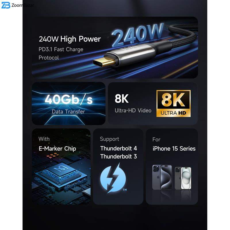 • سایر توضیحات کابل پشتیبانی از تکنولوژی Thunderbolt 4 ، USB 4 توان انتقال داده با سرعت بالای 40 گیگابایت برثانیه پشتیبانی از رزولوشن 8K توان خروجی 240 وات پشتیبانی از PD 3.1
