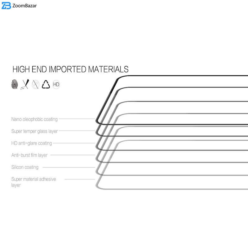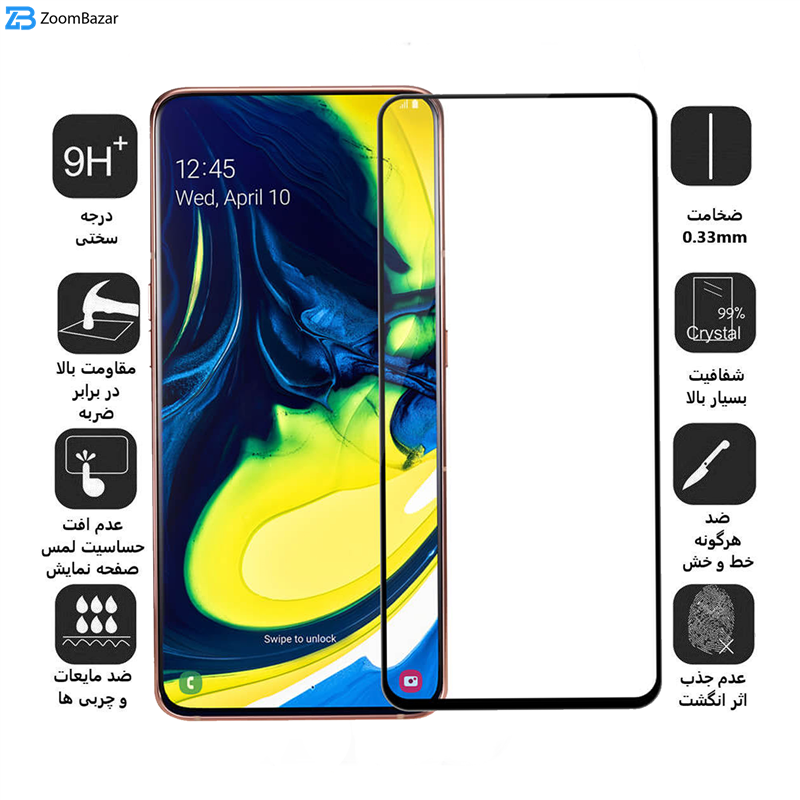 - ویژگیها 9H، جلوگیری از انعکاس نور، جلوگیری از ایجاد خط و خش، قابلیت نصب آسان، مقاوم در برابر چربی و اثرانگشت، مقاوم در برابر خط و خش، نصب بدون حباب