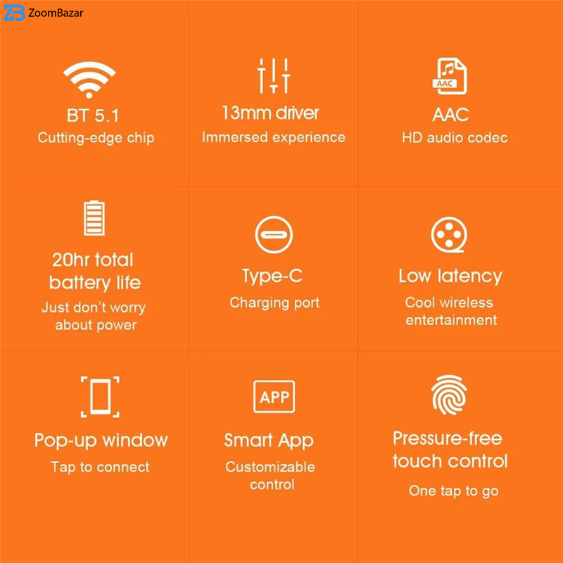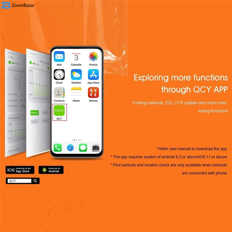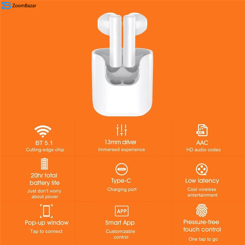 | سایر مشخصات | قابلیت ارتباط و تنظیمات بیشتر در اپلیکیشن اختصاصی QCY، استفاده از میکروفون دوگانه در هر هدفون (میکروفون دوم جهت دریافت صدا های اطراف و حذف می باشد )، دارای استاندارد IPX5، دارای قابلیت POP-UP Window در گوشی های اندروید، پشتیبانی از AAC |