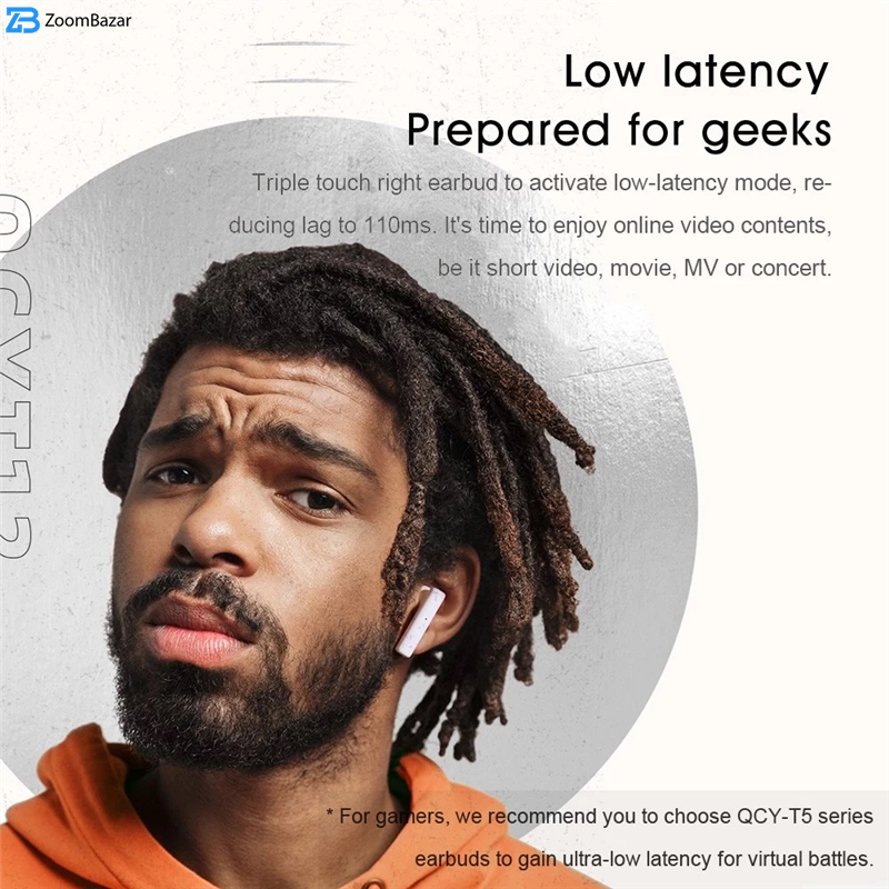 QCY T12 با استفاده از دو میکروفون در هر هندزفری تضمین یک مکالمه با کیفیت بالا و بدون نویز را به شما می دهد. در واقع میکروفون دوم که در قسمت پشتی قرار دارد صداهای اطراف را دریافت می کند و آن ها را حذف می کند که به گوش مخاطب شما نرسد.